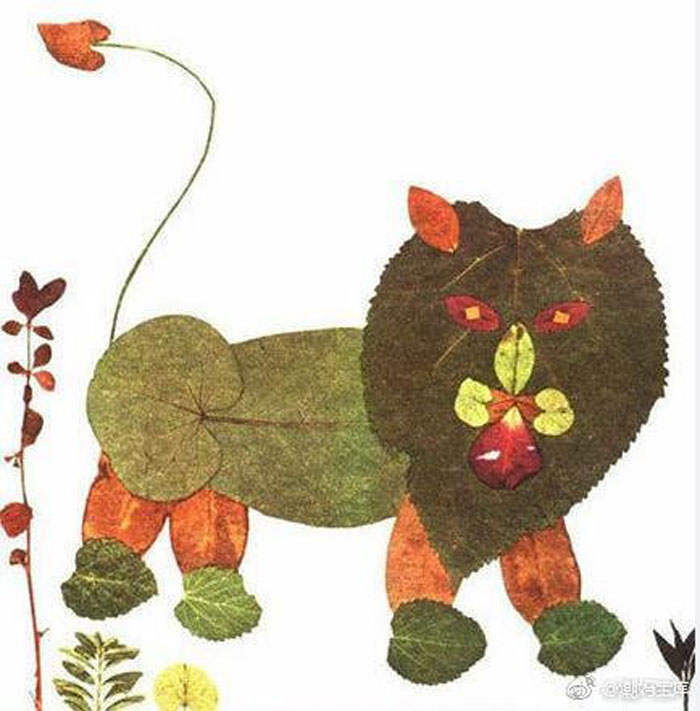 震惊了 秋天落叶拼成的小狮子 真的太可爱 来和孩子一起美好的互动