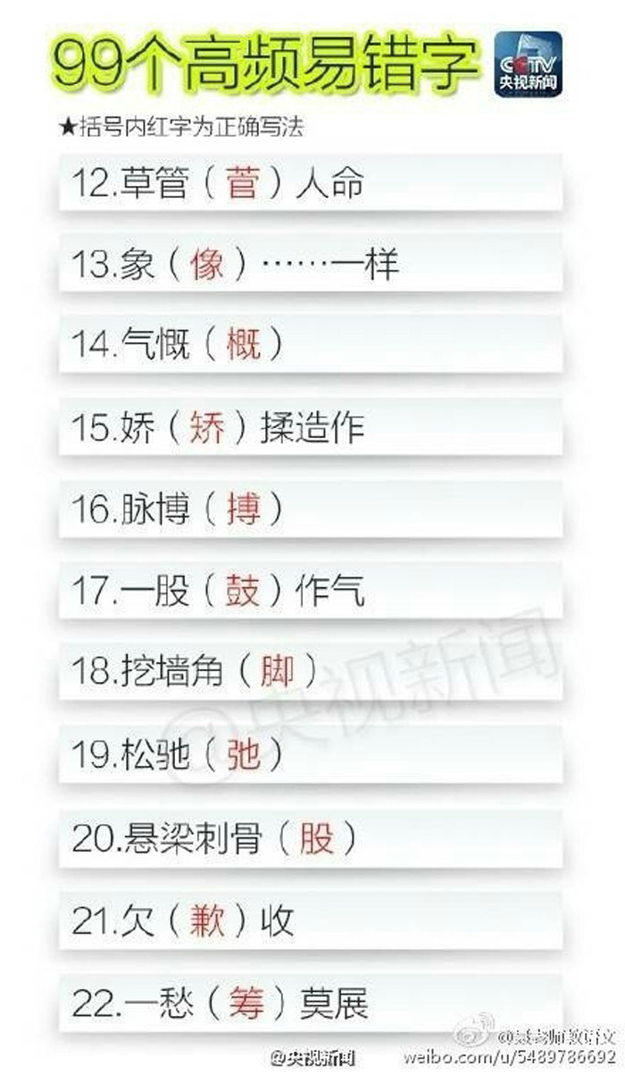 90个高频易错字 速来测试一下自己对多少 - 90个高频易错字2