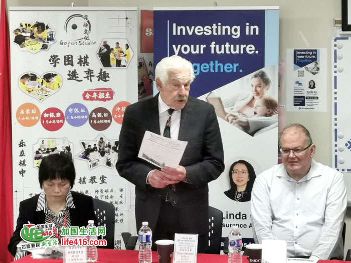 加拿大围棋协会(Canadian Go Association, CGA)主席James Sedwick应邀出席新闻发布会。他在致辞中表示,CGA成立于上世纪60年代初,其总体目标是与国际围棋社区和国际围棋赛事协调,尽可能在加拿大境内推广围棋,为围棋教学和青少年项目提供资助等一系列内容。James高度肯定了弈趣围棋成立以来在加拿大推广围棋运动所做的工作,并感谢HSK多伦多汉考中心与弈趣围棋主办该项赛事。他表示,加拿大围棋协会(CGA)将积极协助举办本次团体赛,旨在通过比赛焕发加拿大社区对围棋运动的兴趣,令更多人士关注这项运动、参与这项运动。而且James提到,目前在加拿大,参与围棋项目的人士中有40%是非华裔,而在某些地区例如哈利法克斯,参与围棋项目的非华裔比例达到80%。