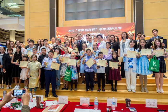 【加国生活网】由中国驻多伦多总领事馆主办的2019年“中国熊猫杯”学生演讲大赛,9月8日在多伦多锦绣中华举行。近50名来自安省和曼尼托巴省的华裔中小学生进行“我与中国”为主题的演讲比赛,刘诗华、甜甜(Fiona MacDougall)、丁天杨分别获得小学组、中学土生组和中学新移民组的一等奖。中国驻多伦多总领事韩涛,及来自本地政治、教育、社团等各界人士出席并观看了学生们的精彩比拼。