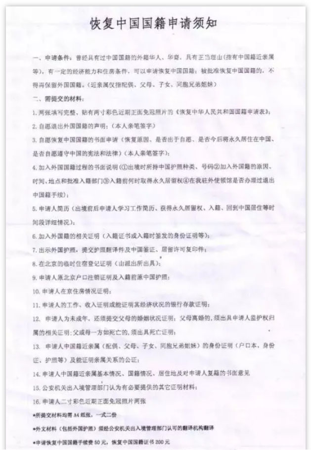 网友多多哥哥H发帖:各种传说,说中国国籍多么难恢复,纯属是胡扯。本人白丁一位,也恢复成功了。