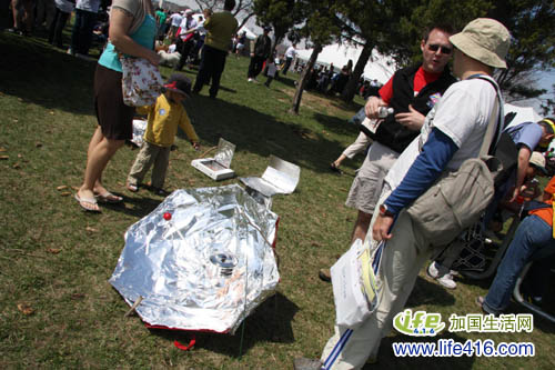 看看这位,把家里的雨伞改成太阳能炉,所有的人都上去试试那口锅热不热。