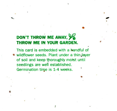 另一个推位,派发 Go Transit 的宣传广告,纸背面写着:“不要把我当作一般的纸扔掉,请把我种在花盆里”,定睛一看,原来纸的背面粘有一些野花的种子,把这张纸放在花盆里,再盖上一层土,就会长出各种鲜艳的花朵,真是挺有创意的。(仔细看,那一个个黑点或是棕色的圆点就是花种)