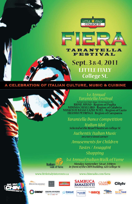加国生活网小编最新爆料:2011年第八届“Fiera - Super Weekend Italiano” 将于Labour Day 长周末期间2011年9月3日至4日12pm-2am在多伦多“小意大利”区(Toronto Little Italy - College 街上西起 Shaw 东至 Bathurst 的那一片区域)举行。