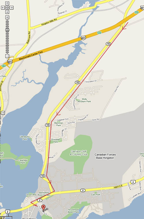 另一个线路就是沿401高速,在623号口下,沿着15号公路一直向南开,开到公路尽头后向右转,沿着2号公路向西开,在Fort Henry Dr. 路口处向左拐即是。