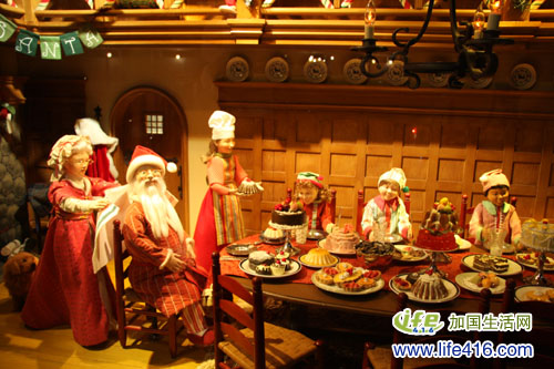 第五组的橱窗描述的是圣诞老人和精灵小矮人们吃圣诞晚宴的情景
