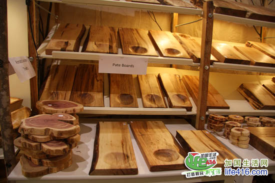 加拿大的木材资源很丰富的,除了做家具外,剩余的小块木头扔掉了可惜,于是这些形状各异的菜板就新鲜出炉了……