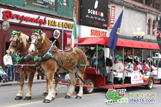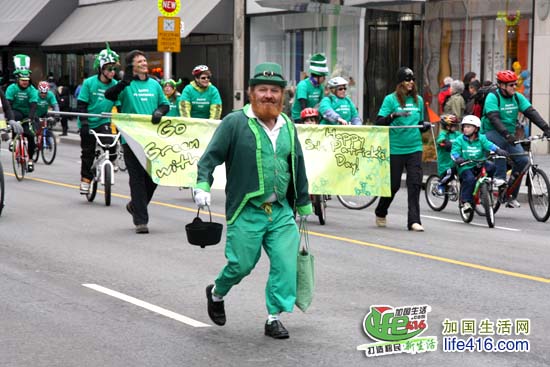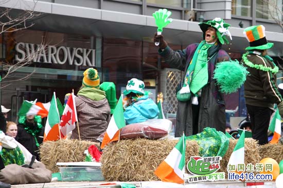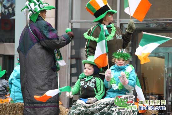 【加国生活网】每年的3月17日是爱尔兰人的St. Patrick's Day,在加拿大多伦多居住的爱尔兰族裔都会举行盛大的St. Patrick's Day大游行,一般都会在离3月17日最近的那个星期天中午12点举行。虽然三月的多伦多仍寒风阵阵,但仍挡不住多伦多市民参与这个活动的热情。