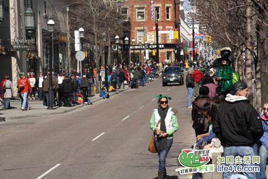 多伦多市民站在Yonge街两旁,翘首期盼游行队伍的到来。