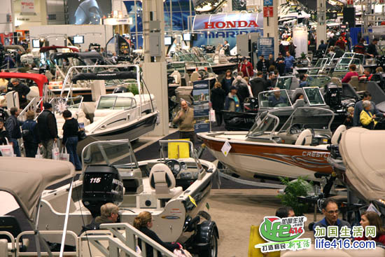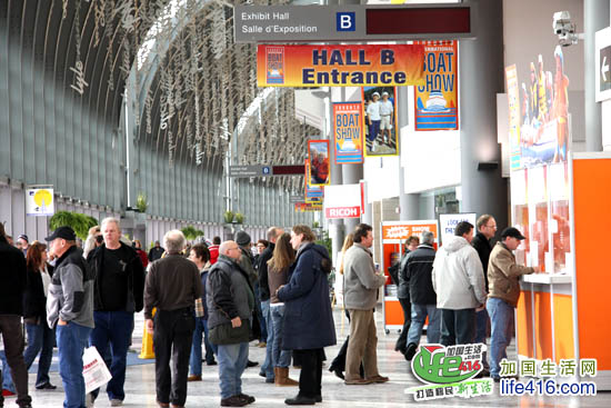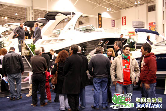 虽然室外寒风凌冽,但展览大厅里却特别温暖、热闹非凡,原来加拿大人都跑到这里“品尝”游艇的“饕餮大餐”来了。