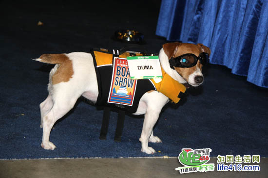 在2009年的游艇展的室内湖上,还出现了一位表演“明星”——一只名叫Duma 的Jack Russel 狗,你可不要小瞧这只狗,它会开游艇,还会滑水呢。