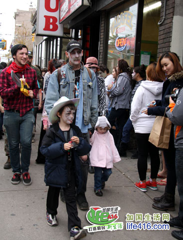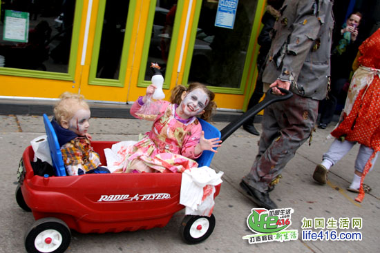 这是一家四口僵尸,小姑娘还不忘记冲着小编的相机摆pose,老爸正拖着他们朝向走呢,老妈呢?(看下一张照片)……