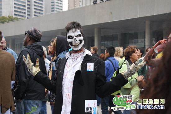 下午2点左右,加国生活网小编来到活动现场,发现黑压压一片僵尸正“占据”着市政府广场……