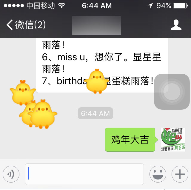 如何操作?就是在和朋友聊天的微信窗口或是群窗口中输入以下微信口令,比如输入“鸡年大吉”