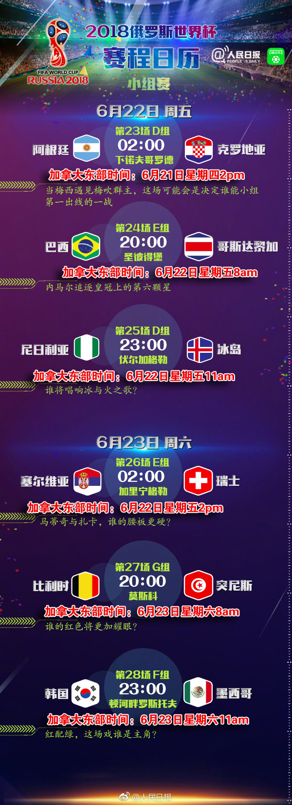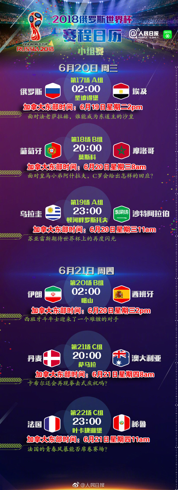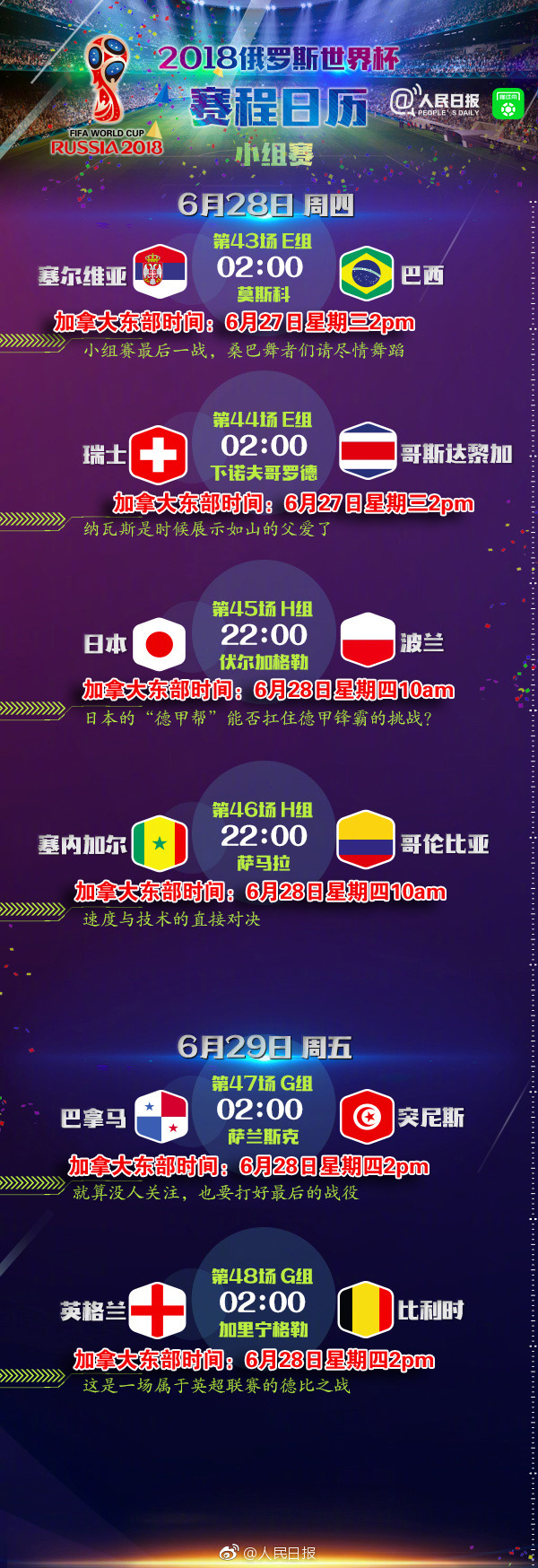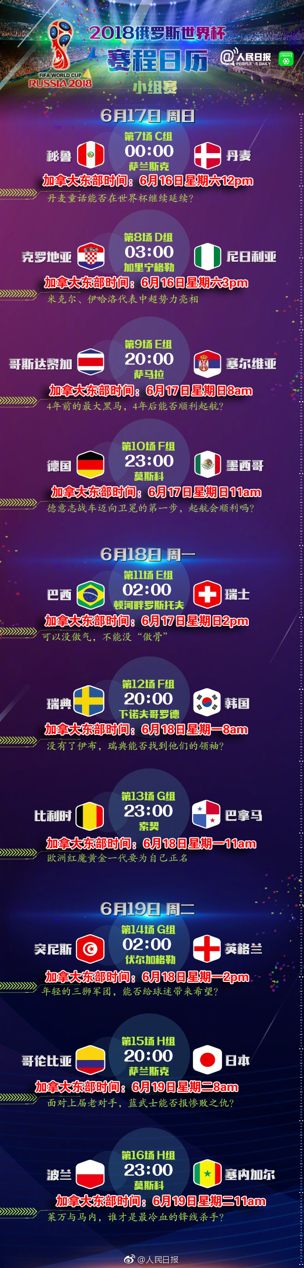 加国生活网小编根据@人民日报 做制作的“世界杯赛程日历”以及加拿大东部时间,制作了加拿大东部时间的“2018俄罗斯世界杯完整赛程时间表”,希望能对在加拿大的华人球迷们有所帮助。