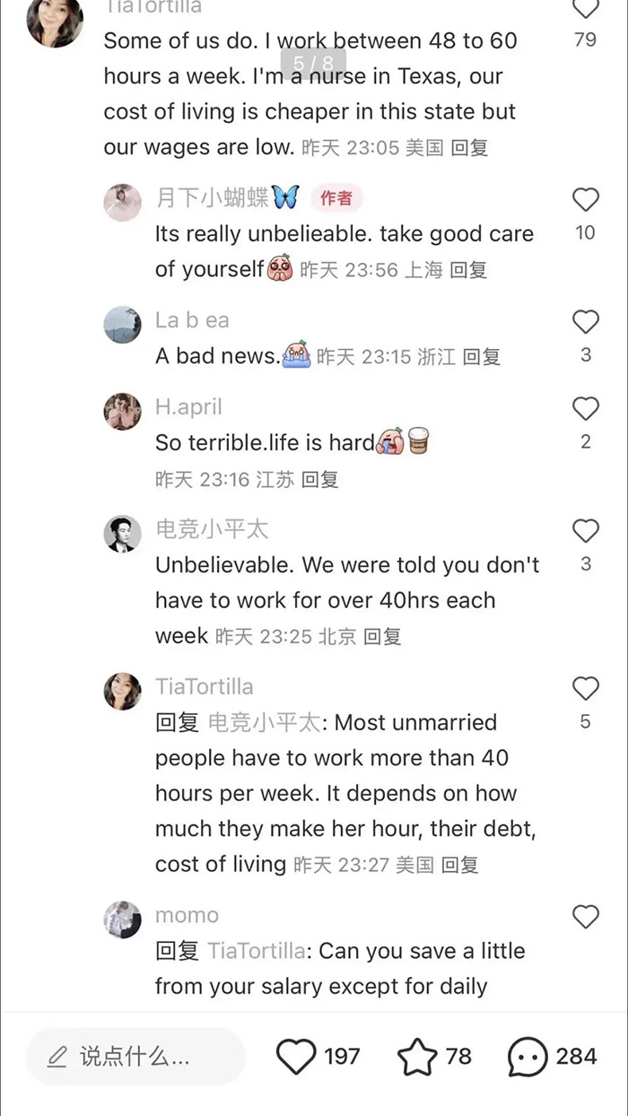渐渐地,中美两国网友开启了生活对帐模式,共同慨叹生活不易。