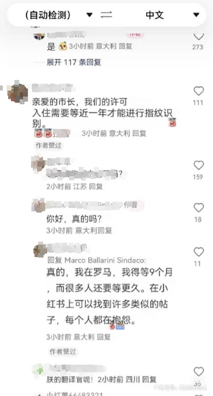 受惠于算法功能与机制,部分外国网友还能在小红书偶遇熟人。此前,一位美国网民在小红书意外遇见了自己的父亲,而最近,一位意大利网民通过小红书联系上了市长:一位意大利市长在小红书上创建了账号,随后,意大利网民便在该市长账号的评论区留言解决问题,并收到了市长本人的回应。有网民戏谑地表示,“小红书问政意大利”。
