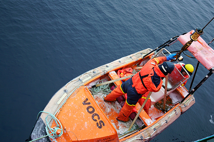 马丁和几名船员很费力才帮我们把救生衣船上,马丁说去取相机,转眼间我们就被吊下海面,回头张望,已离大西洋企业号远去,我的同伴眼睛湿润了。。。