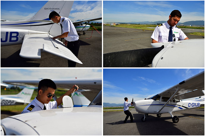 这就是带我们飞行的小飞机,是孙总接手航校后最新购置的Cessna 172S单引擎飞机,算上两名驾驶员,只能座4人,大概要28万美金一架,听说当年原先的加拿大航校已无法运转,孙总接管后,重新注入资金,返聘原先的本地管理人员和教官,现在国内每年各大航空公司(包括国航、南航、东航等)都有派送的学员在此学习飞行,原来未来机长是如此成长的。本次领飞的是加拿大蒙代尔飞行学院(Montair)的资深教官Mon。