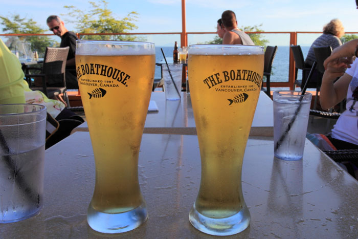白石镇的海滨还是吃海鲜的好去处,傍晚时光,上到船屋餐厅的天台,要两扎啤酒,黄色的液体犹如点缀在万顷碧蓝的大海之上。