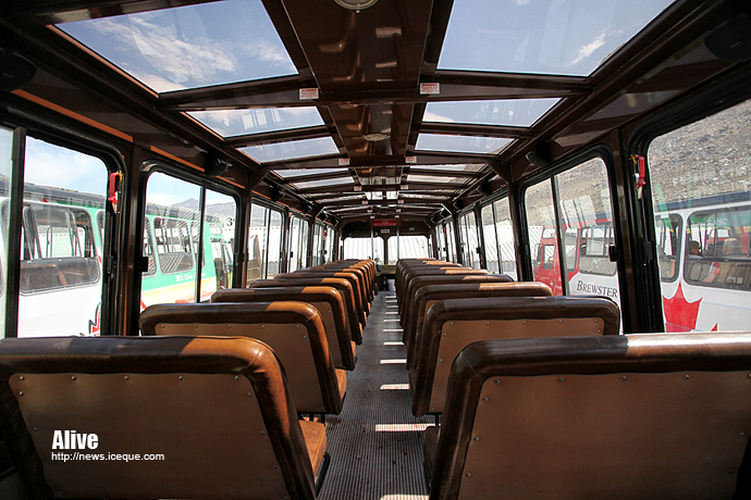 这个大家伙全世界仅有12辆,一辆旁落美国,一辆被用于极地科考,剩下的全部都在哥伦比亚冰原上。据说只有它可以适应的了近六十度的冰原坡度,这也从侧面解释了,为何每一辆的造价高达几百万美金。大巴外部现代,内部却很复古,至今已经生产了三代。在行进的过程中,为了增加抓地力和扭矩,保持低速是必需的,所以雪车全程会以15迈的速度前行。