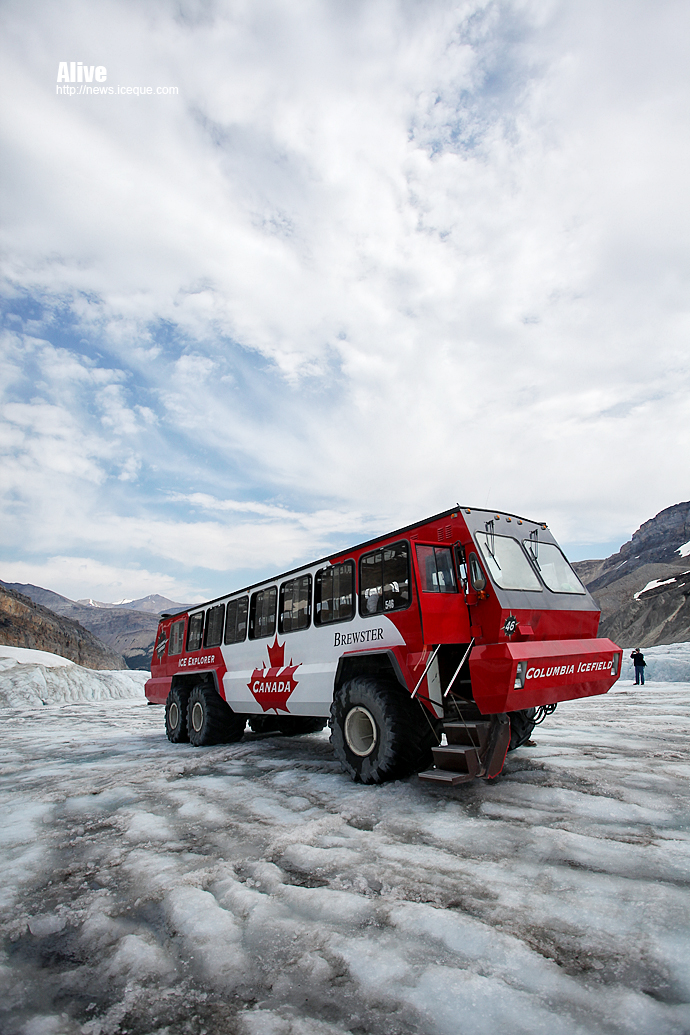 远离了班夫国家公园,汽车驶入贾斯伯境内。没多会,山脚下的冰川观光大厅便出现在眼前。办理好登山手续后,便随着冰川大巴车继续向山上进发。
