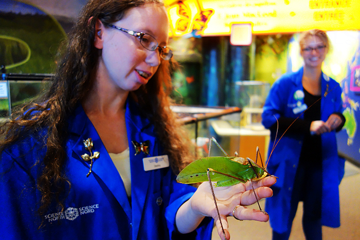动态地球馆的本部北方科学馆(Science North)也是一个大开眼界学习的好地方。这个位于Ramsey Lake湖畔的现代建筑也是建立在一个巨大的镍矿岩石上的。所以进门开始通道两侧就是裸露的岩壁,让你可以直观感受地球表面。馆中央有一副骨架从一楼贯穿到四楼,开始我还以为是恐龙化石呢,但经过”蓝制服“科研人员的介绍才知道是鲸鱼骨架。这里可以了解生物学、物理学‘人类生理学、天文学、机器人学等各种实验室的科学活动。在蓝制服的引导帮助下,游客也可以参与其中,触摸或者亲自动动手。