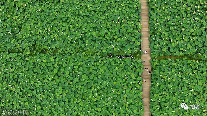 浙江衢州的百亩荷花池,吸引了众多市民。