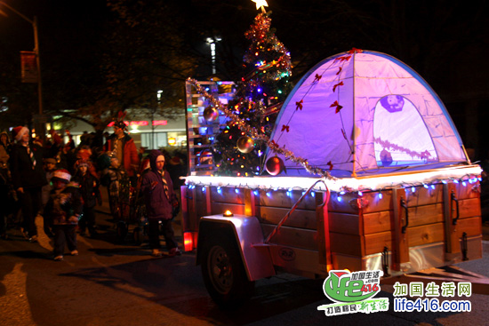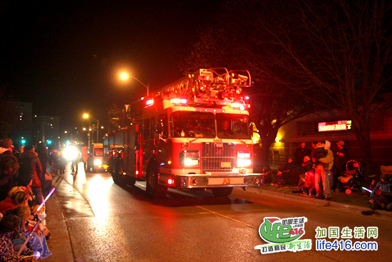 【加国生活网专稿】位于多伦多北部的安省Ajax小镇每年都会在夜晚举行圣诞老人大游行活动,同白天举行的圣诞大游行不同,晚上举行的一定是需要光的,于是这个被各种各样的“烛光”所装饰的大游行就别具特色了。