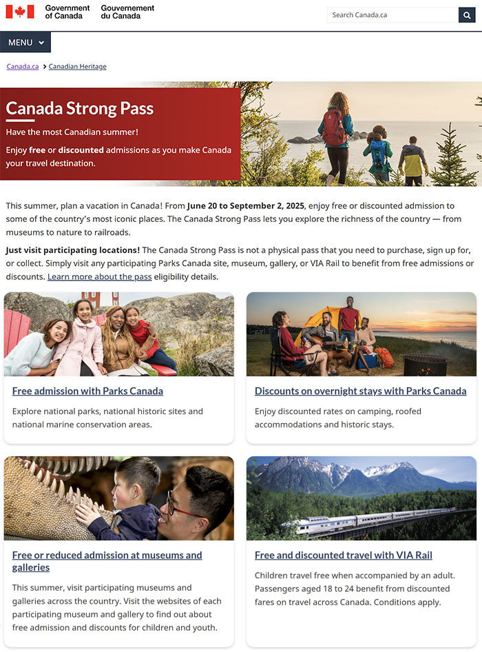 加拿大官网有关Canada Strong Pass的更多详细信息: