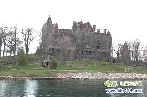 千岛湖中还有一处最有名的小岛——心形岛(Heart Island)。1900年,纽约闻名的Waldorf Astoria Hotel 酒店的主人、酒店业大王George Boldt在 Alexandria Bay风景优美的Heart Island买下这个岛屿,并投资2500万美元,在此兴建一座欧洲风格的古堡Rhineland Castle,作为献给他的太太Louise的礼物。从那年开始,George Boldt一家人在岛上渡过了四年阳光灿烂的夏季,与此同时,300名工人、石匠、木匠和艺术家们也在建造这座六层高、拥有120个房间的堡垒,连同多条隧道、发电厂、几处意大利式花园、吊桥和一所鸽房。工程真的是精细绝伦,不惜工本。但不幸的是,城堡刚建好,还在装修中,太太Louise竟于1904年病逝。深爱太太的Boldt伤心不已,向岛上发出电报,命令工人立即“停止所有建筑工作”,并决定从此不再续建,也不再踏足此岛,让它成为他的爱情纪念碑。Boldt死后,根据他的遗嘱,将此岛交给了美国政府。