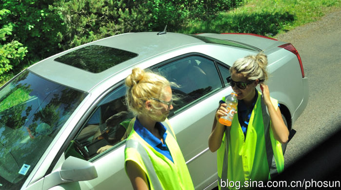 很多人开车来就是为了体验这个上坡时自动往上走的奇怪感觉,一个皮卡还拖着一个老爷车,大概是想试试,这怪坡到底有多怪。