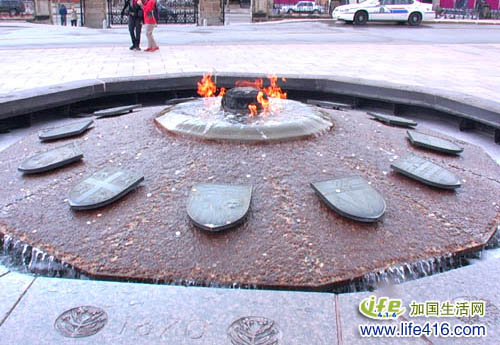 在国会大厦前的广场中心有一个为纪念加拿大建国百年而建的长明火台——“百年之火”。