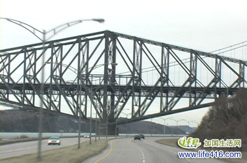 在快到魁北克市的时候,我们看见了一座巨大的桥,这就是魁北克桥 Quebec Bridge,又被人称作铁架桥。
