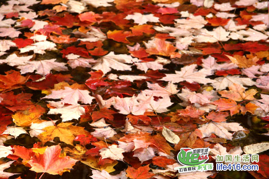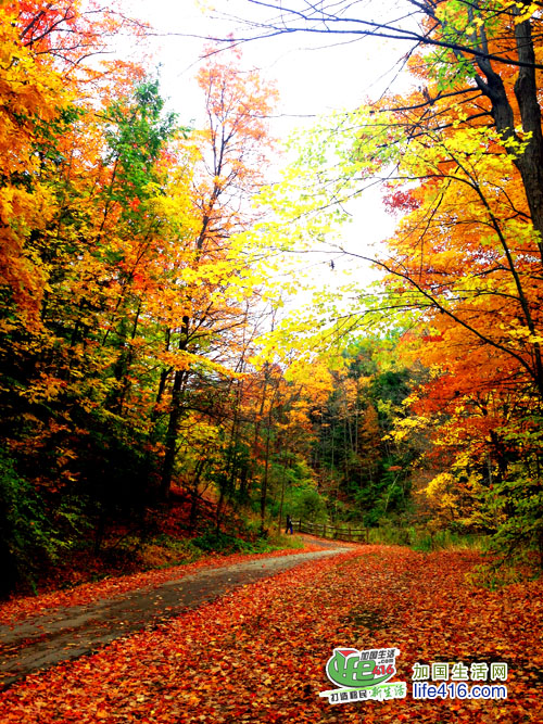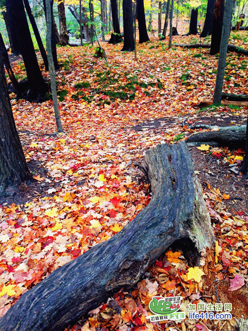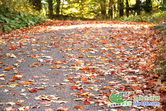【加国生活网专稿】多伦多爱德华公园(Edwards Gardens)位于Lawrence夹Leslie的西南角,里面有一个Thomas J Bata Trail直通Sunnybrook Park。每天,有许多市民在这里跑步、骑自行车、谈恋爱、溜狗。就是在这段Trail里,曲径通幽,满目枫红。那片片的枫叶一点也不比Algonquin(阿岗昆)公园的差。
