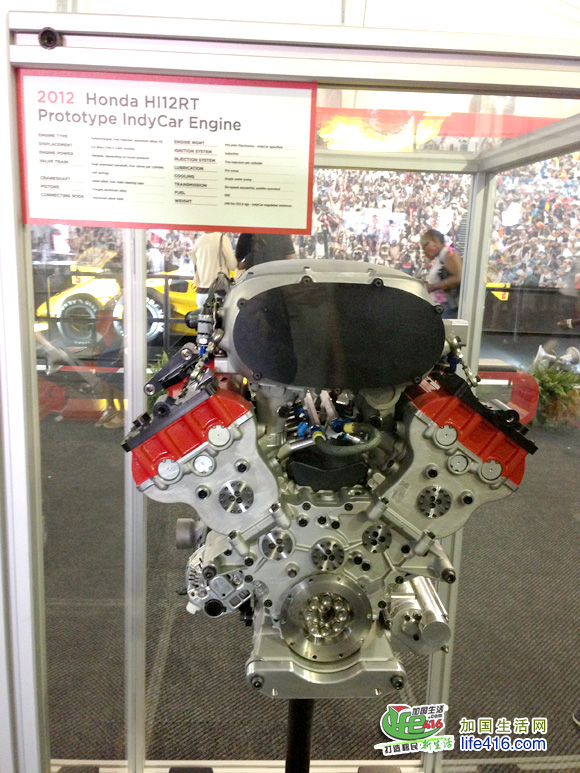 大篷里还有有关赛车的展示区,这里是展示赛车发动机引擎的地方……