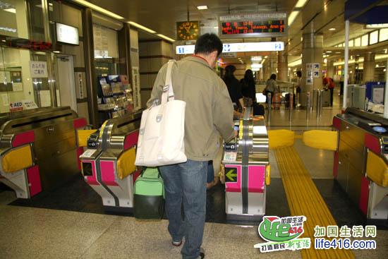 进入JR Line站时,要把票插进验票机(有点象进坐TTC地铁时投Token),票会从验票机的另一口弹出,此时票已被打上“进站”的标记。朋友介绍说,等出站的时候,还要再把票插进验票机,如果票价无误的话,票会被验票机收回,出口门打开,让你出去;但如果票价有误的会,验票机会报警,出口门关闭,你是出不了站的,得补票后才能放行。