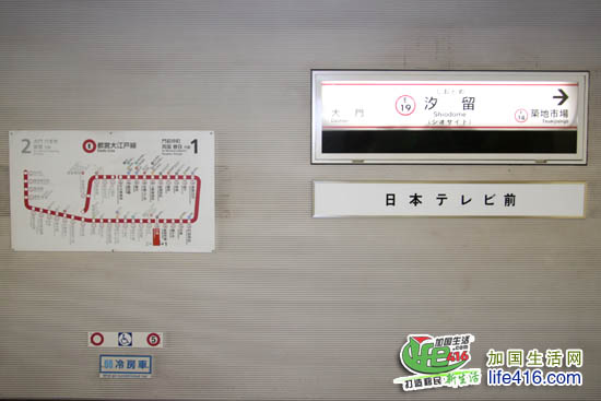 把这些小圆圈标注号码还有一个用处,就是一旦遇到有残疾人士坐地铁时,总会有工作人员在车厢门口搭好方便轮椅进出的铁板,把残疾人士送上地铁后,他们会问清楚此人的到达站,然后通知到达站的工作人员在哪号车厢门口等候,再由那个站的工作人员把此人接出地铁。看到这些,再次对日本人的服务佩服之极。