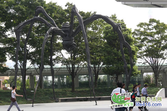 这里说点题外话,小编在离开东京都厅到下一个景点的路上突然看到这个雕塑,感觉特别眼熟,竟然和渥太华国家美术馆的大门广场的巨型蜘蛛雕塑特别像,它俩不会是“双胞胎”吧?