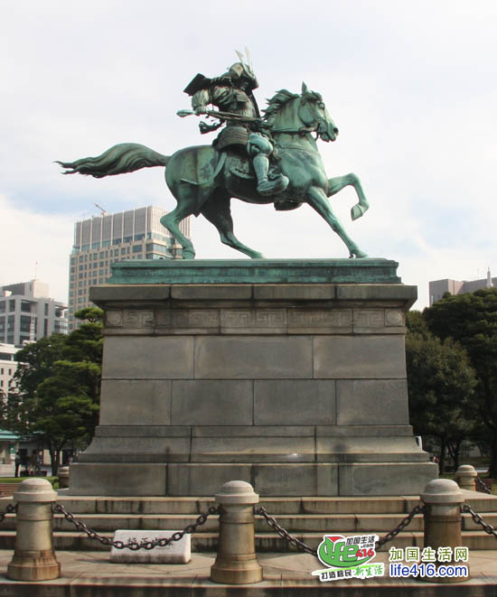 在进入皇居之前,我们先来到皇居的外苑。这是位于皇居东南方的一座花园,有大片的绿地,还有经过精心雕琢的柏树和日本中世纪时期著名的武将楠木正成的铜像。