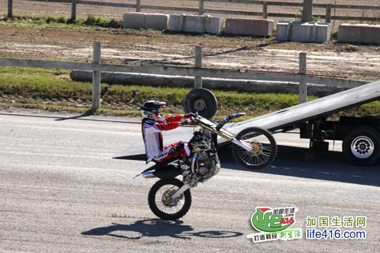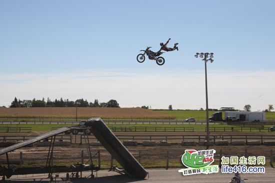 加国生活网小编用连拍的方式拍下了这样的瞬间,漂亮吧,刺激哟。要知道,表演者和摩托车在空中这种造型绝对不是一天两天就能练出来的……