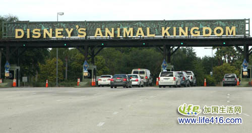 由于我们“严格”地按照路牌所示开车,很快就见到了Disney's Animal Kingdom 的大牌子,在收费口交了11美金的停车费后,我们就可以在里面的停车场停车了。