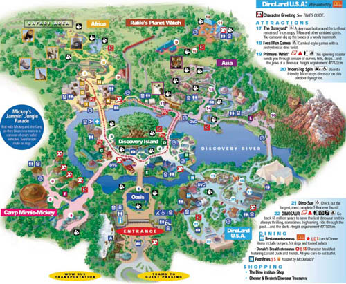 这是Animal Kingdom的地图,大家要是好事可以和Magic Kingdom的地图比比,这个公园确实要比Magic Kingdom小许多。