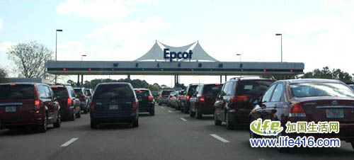 由于Disney 的四个主题公园基本上是在一块,我们连走了三天的相同线路,到了第五天早已驾轻就熟,上午10点左右,我们很容易就找到了Epcot。远远看到Epcot 的收停车费的大门,一下子感到象是即将进入未来世界。