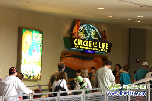 Land 馆里面除了有Soarin 项目外,还有另外两个项目Living with the land 和 The Circle of Life。The Circle of life 是一个介绍动物短片,以动画片《狮子王》里的角色为主线,介绍地球上的野生动物是如何繁衍生存的,并教育大家,这些动物和人类一样在这块土地上生存,人们没有理由去破坏它们的生活。