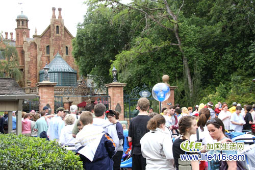 【加国生活网专稿】公园的第17号景点“The Haunted Mansion”被网友们称作是个阴森恐怖、“鬼魂出没”的地方,不过,西方人好象天生不怕鬼(这个从“万圣节”的活动中就可以看出来),这个闹鬼的豪宅门前的热闹非凡,队伍也排得很长。