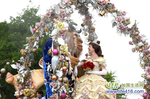 从“鬼屋”里出来,Magic Kingdom 下午游行“Disney Dreams Come True Parade”开始了,在欢快的音乐声中,公园里各个景点的人物和角色全部出席。游行的一开始,先是载歌载舞的人群。
