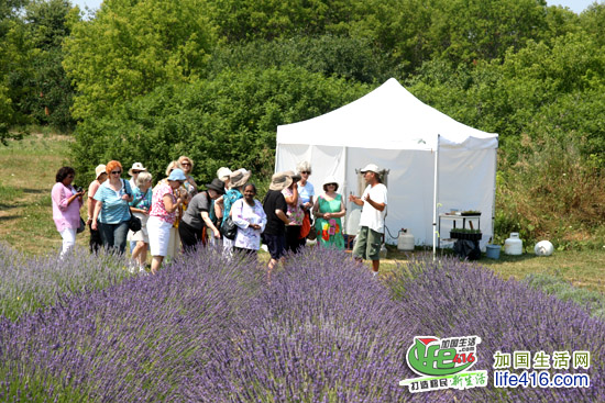 Prince Edward County 薰衣草农场主人正在给游客们讲解他们种薰衣草的经历
