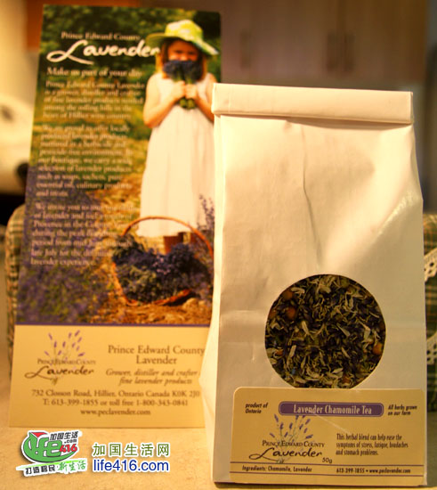 参观完农场,我们临走前还到礼品店买了些专门用薰衣草制成的产品。平心而论Prince Edward County的薰衣草系列产品还是挺贵的,小编没敢买他家自产的薰衣草精油和花水,主要是感觉主人制作精油的水平还不是那么专业,花水有种酸酸的味道(如果你想买专业的性价比高的薰衣草精油,快来参加小编组织的精油拼邮活动吧,详情请点击这里)。专门可食用的薰衣草一小点点就$6,后来小编买的是性价较高的Lavender Chamomile Tea 50g 薰衣草洋甘菊茶12块,对舒缓压力头疼对胃有好处的。