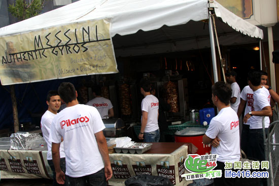 面对Danforth 街上大大小小的美食摊位,哪个最好吃?小编给大家推荐几家。这家名为Messini Authentic Gyros 餐馆推出的Gyros ——一种卷着烤肉的饼相当有名 (小编问了店主,这个单词的发音是“椰肉丝”,有意思哈),每个加税后5块多。要问这家餐馆有多火?请看下张照片……